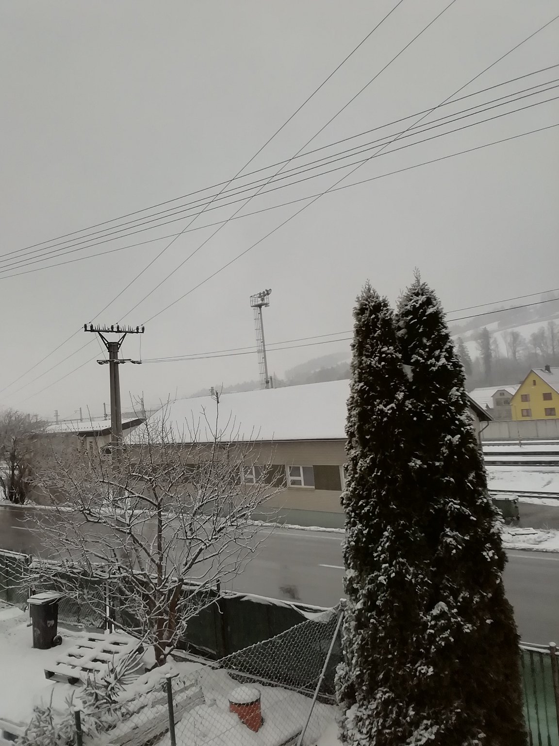 Přes noc napadl mokrý sníh. Výška sněhu od 0-2cm.