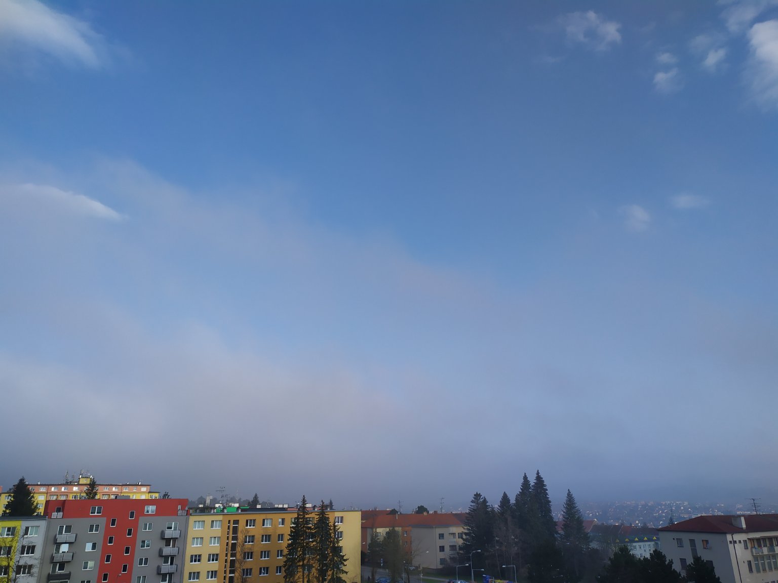 Oblačnost 11,8%, tlak 1014,18hPa↓, poc.teplota -3,33°C, tepl.ros.bodu -0,71°C, rel.vlhkost 95,7%, abs.vlhkost 4,60g/m3, slabý VSV vítr 77° 6,120km/hod.(2 Bft), ozon 405,1D.U., AQI 76(mírné znečištění ovzduší), UV index 0, délka dne 14hod.0min.54vt., světlo 1100,2 lx, včerejší průměrná teplota 7,06°C.