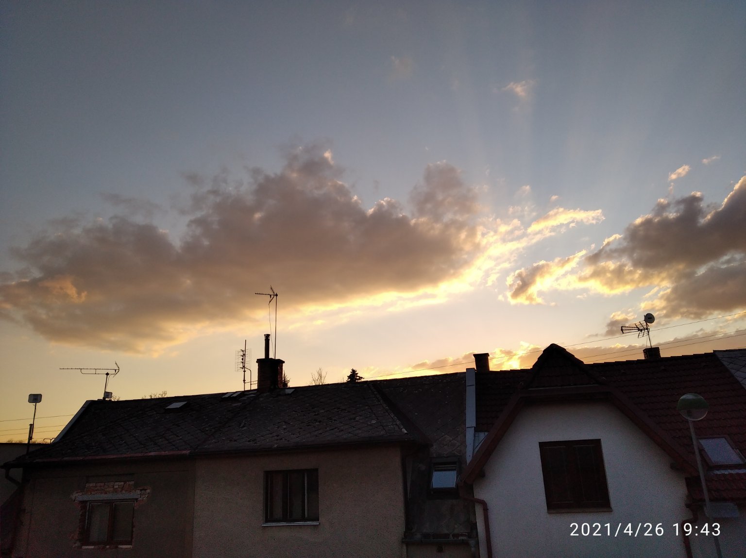 Skoro jasno, vítr okolo 2 m/s, vlhkost 34%. Max T dnes 14,0°C.