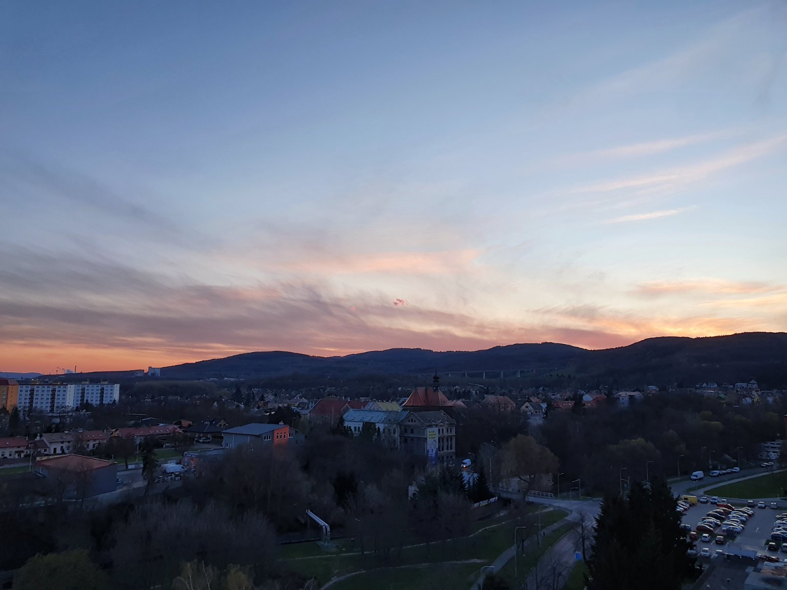 Vynikající dohlednost z Prahy - po západu slunce.