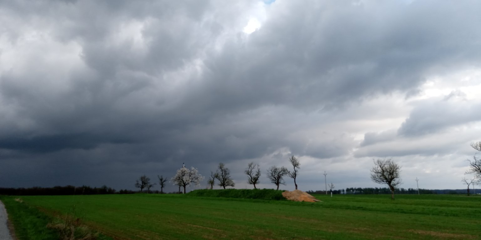 V noci spadlo 17mm. Nyní už se oblačnost částečně protrhává a západní vítr pomalu slábne. Tlak: 1011hPa.