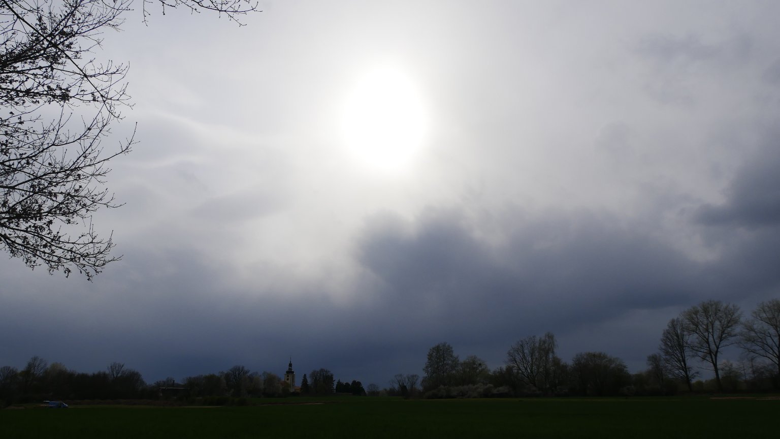 16,9°C, Polojasno. Slaby až mirny narazovy vitr. Dnešni maximalni teplota byla kolem 17°C. Nevim jestli ten mrak je Lenticularis (Čočkovity oblak), ale myslim že jo.