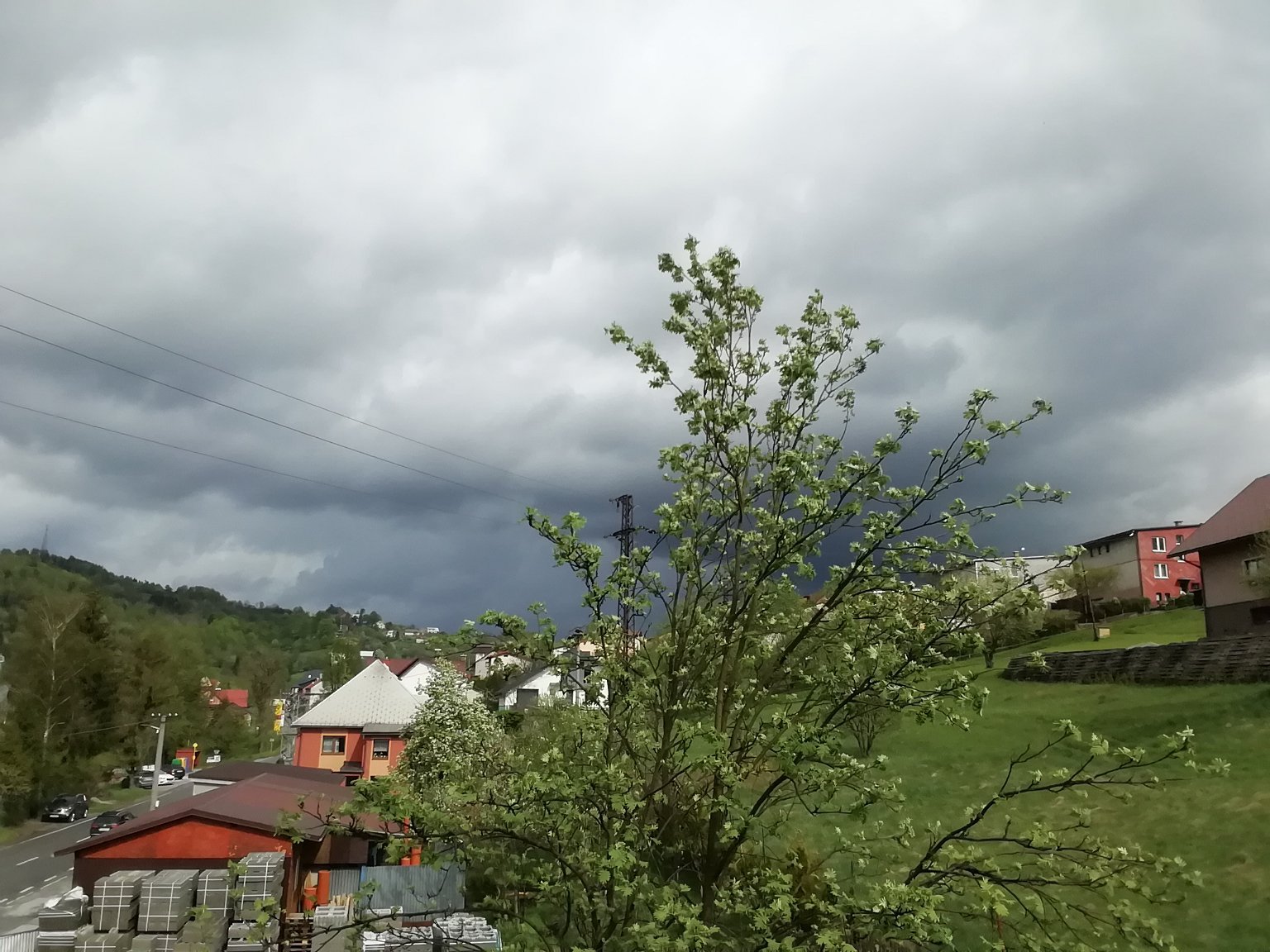 Asi před půl hodinou přešla slabá přeháňka, neměřitelné množství srážek. Z vítr 14 km/h, tlak 1012 hPa, vlhkost 53 %.