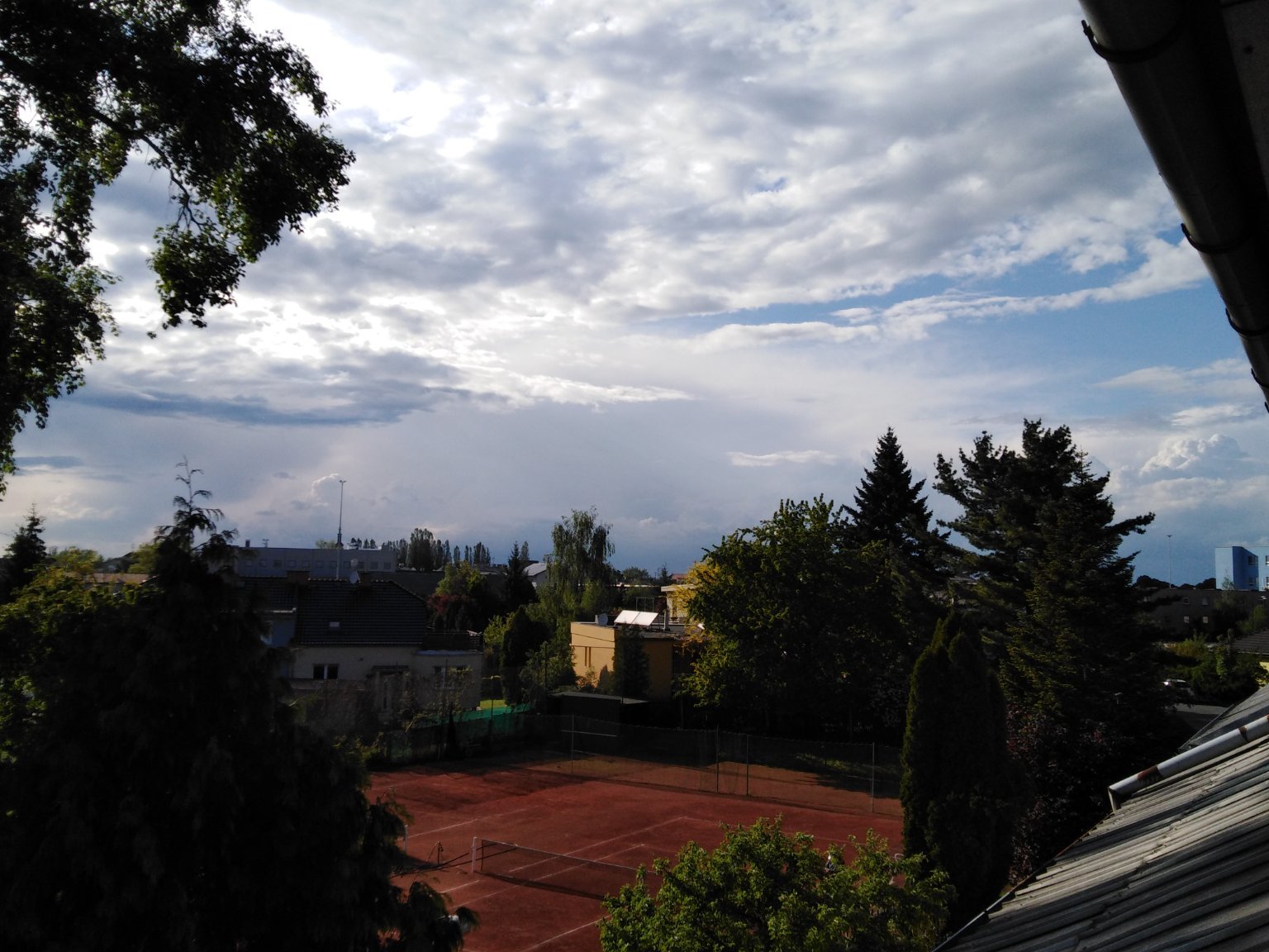 Je polojasno a vane mírný vítr. Severně nás obchází přeháňka.