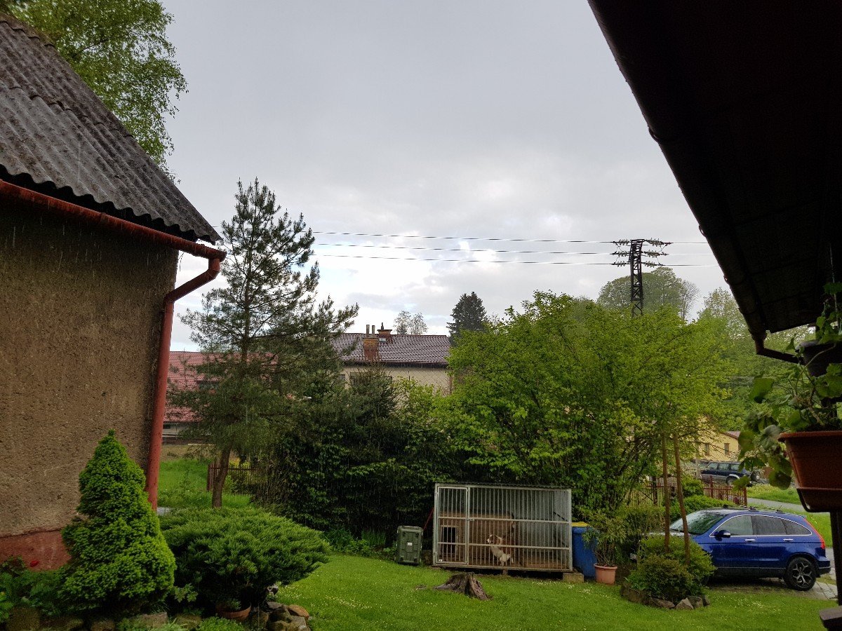 10,8°C, Mirna dešťova přehaňka. Teď teda lilo.