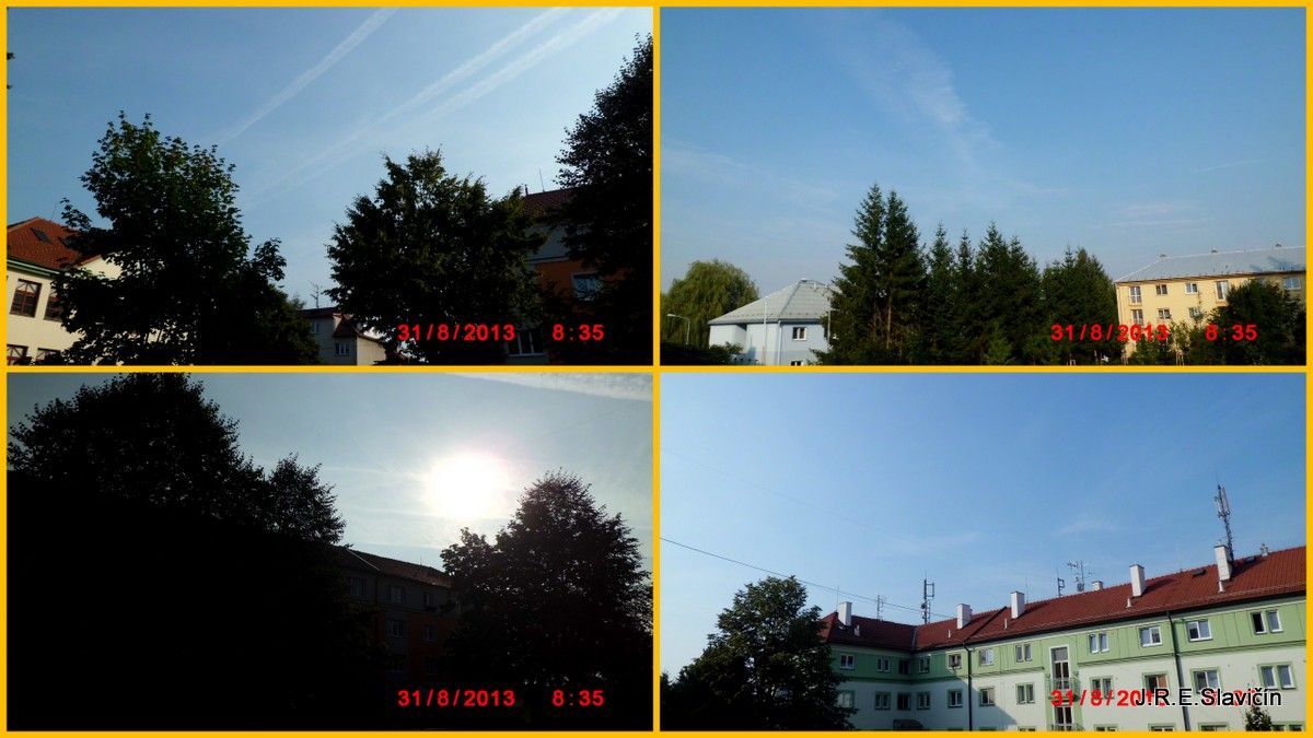 Je zatazeno jen touto jedinou skulinou prochazej slunecni paprsky. Malinko prska a je bezvetri.