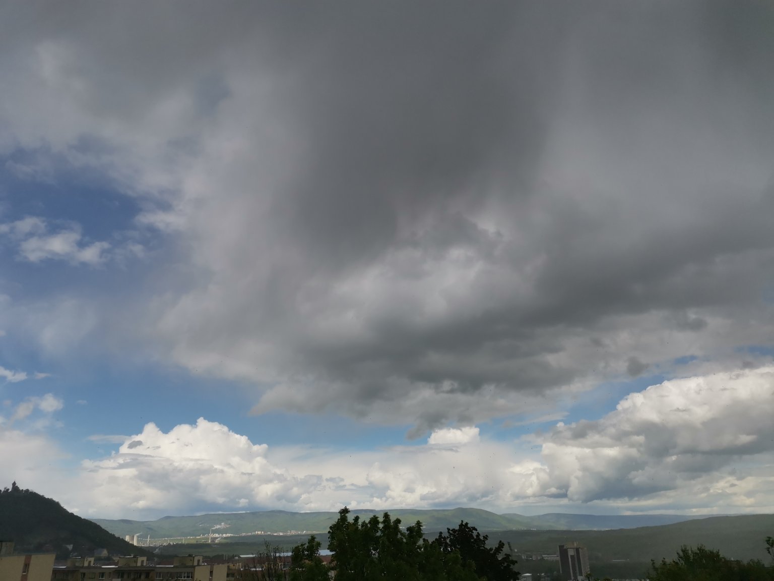 od Z vydatná dešťová přeháňka, prošla městem a pokračovala na V