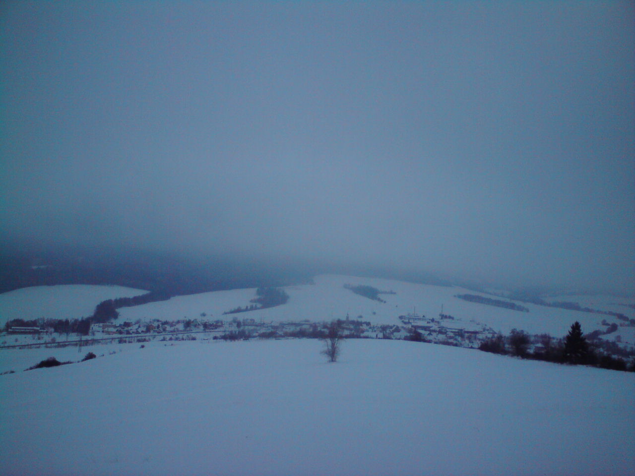 Zdravím všechny... Probouzíme se tu do kalamitního rána. Večer začalo intenzivně padat ( viz snímek ) a vydrželo to až do teď. Venku je 30 cm nového sněhu. Věřím, že dnes toho moc fungovat nebude...