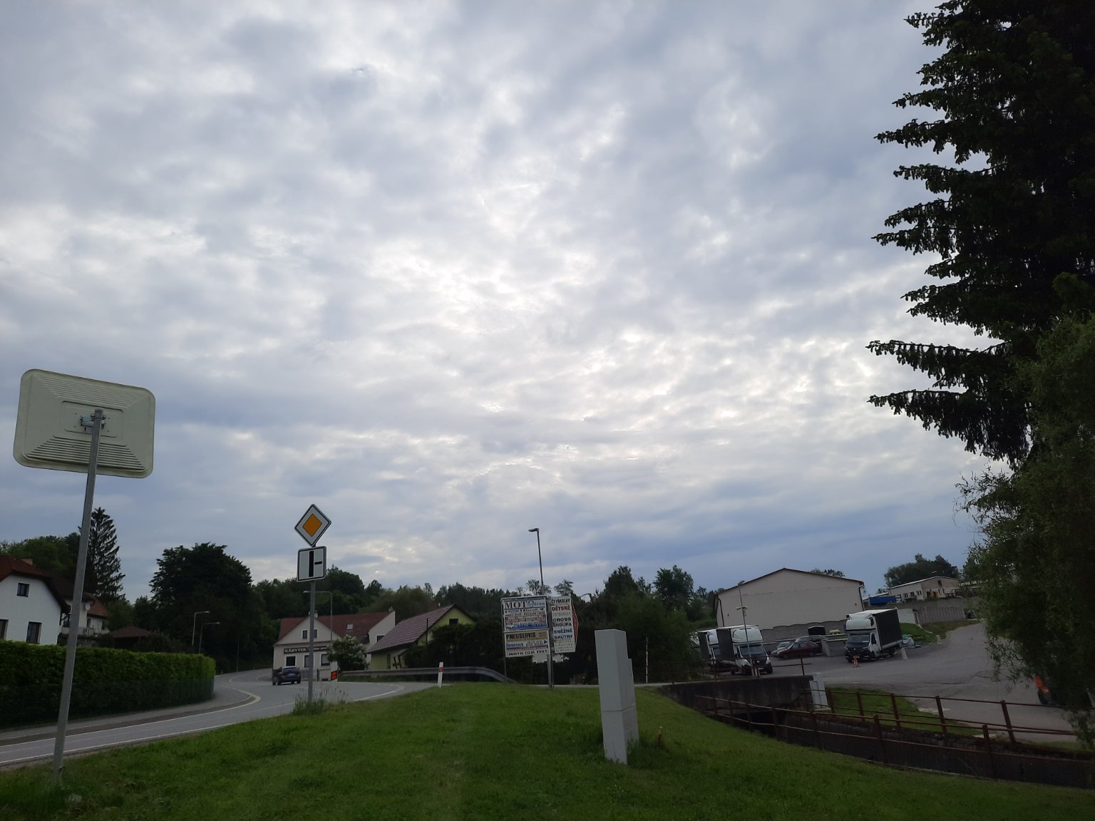 Oblačno až skoro zamračené, slabunka dažďová prehánka