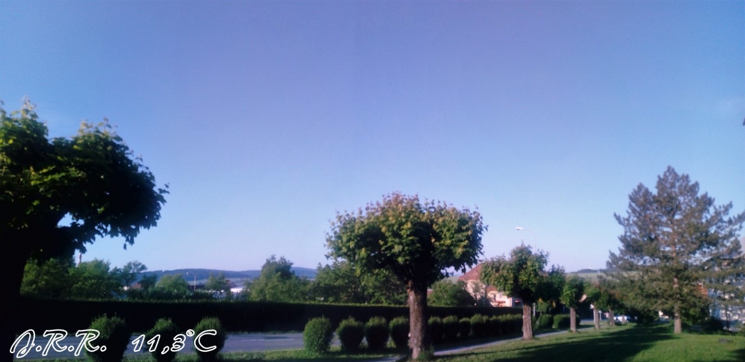 11,1°C, Polojasno. Na druhe straně se už tvoři i kupovite oblaky.