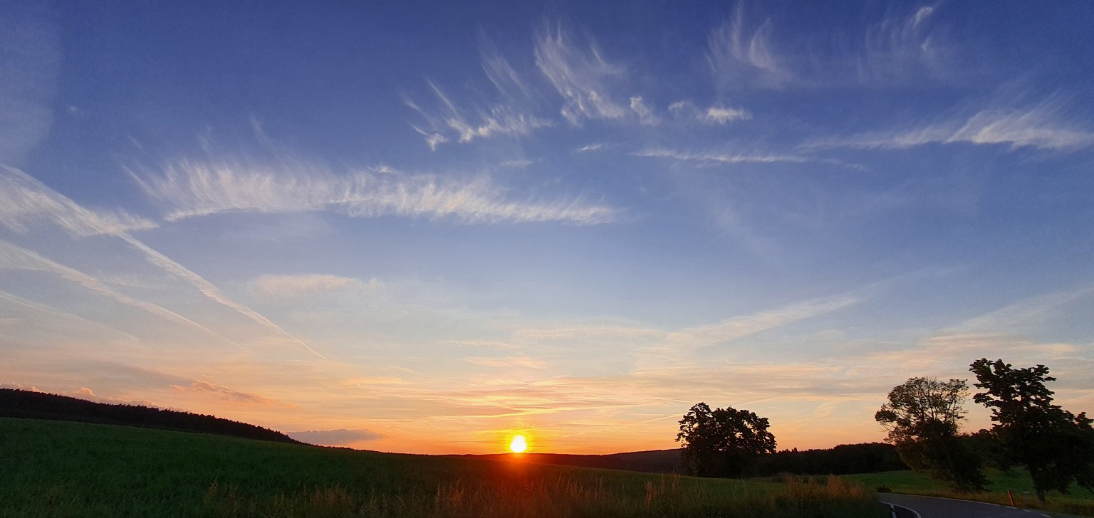 Skoro jasno 2/8, vlhkost 52%, vítr většinou do 3 m/s. Dneska ráno spadlo pár kapek, neměřitelné množství. Během dopoledne rychlé ubývání oblačnosti až na skoro jasno, odpoledne skoro jasno až polojasno. Už beze srážek. Max T dnes 27,5°C, min T 13,8°C.