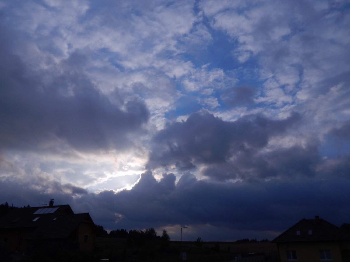 Slabý vítr,tlak 1015hPa,Slunce krátce před západem...