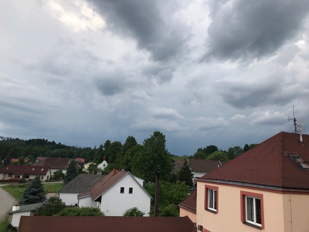 Začalo pršet, zesílil SZ vítr 26 km/h, tlak 1015 hPa, vlhkost 63 %.