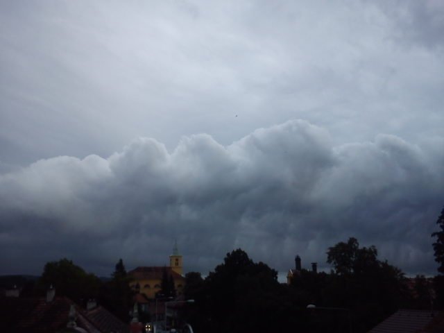 Slabý vítr,tlak 1010hPa,od západu se blíží déšť
