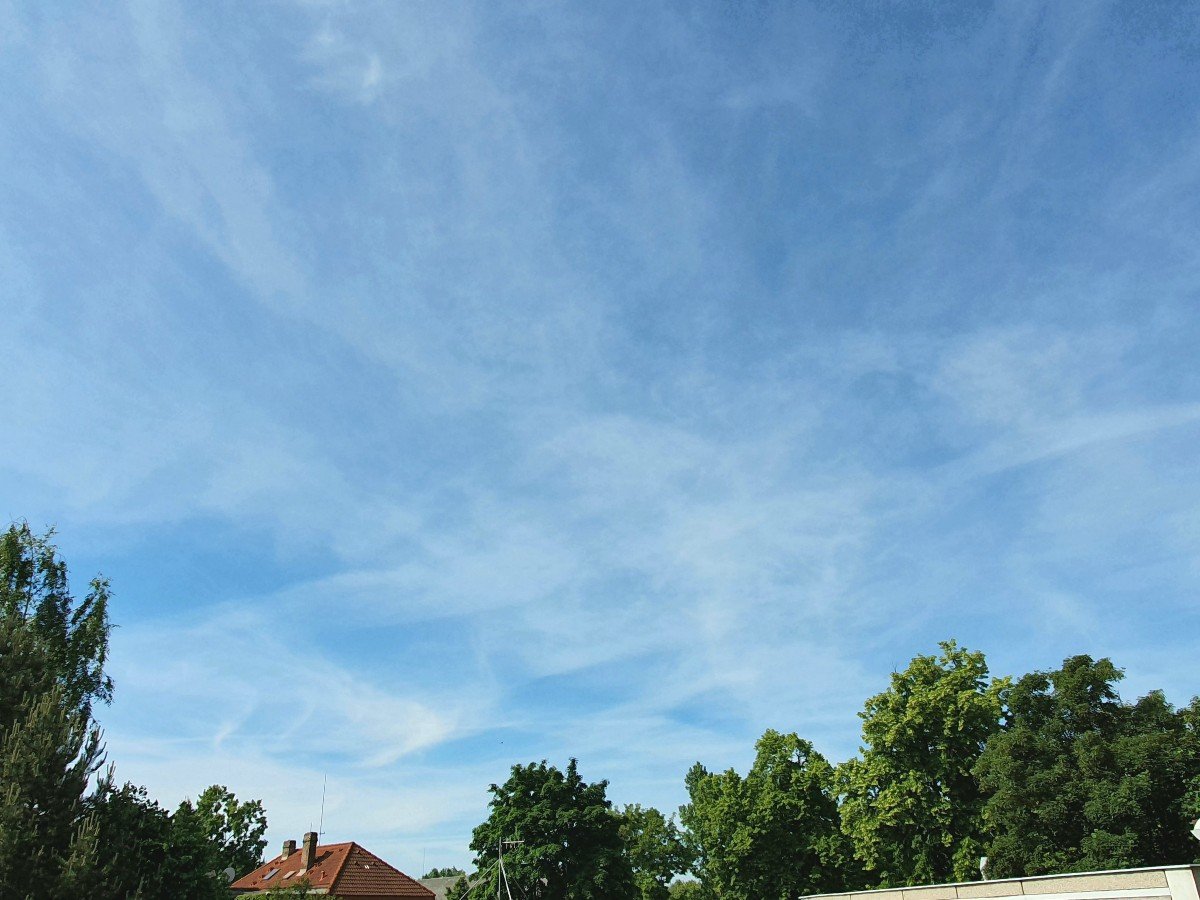Přibývá vysoká oblačnost SZ vánek,tlak 1022 hPa,vlhkost 54%