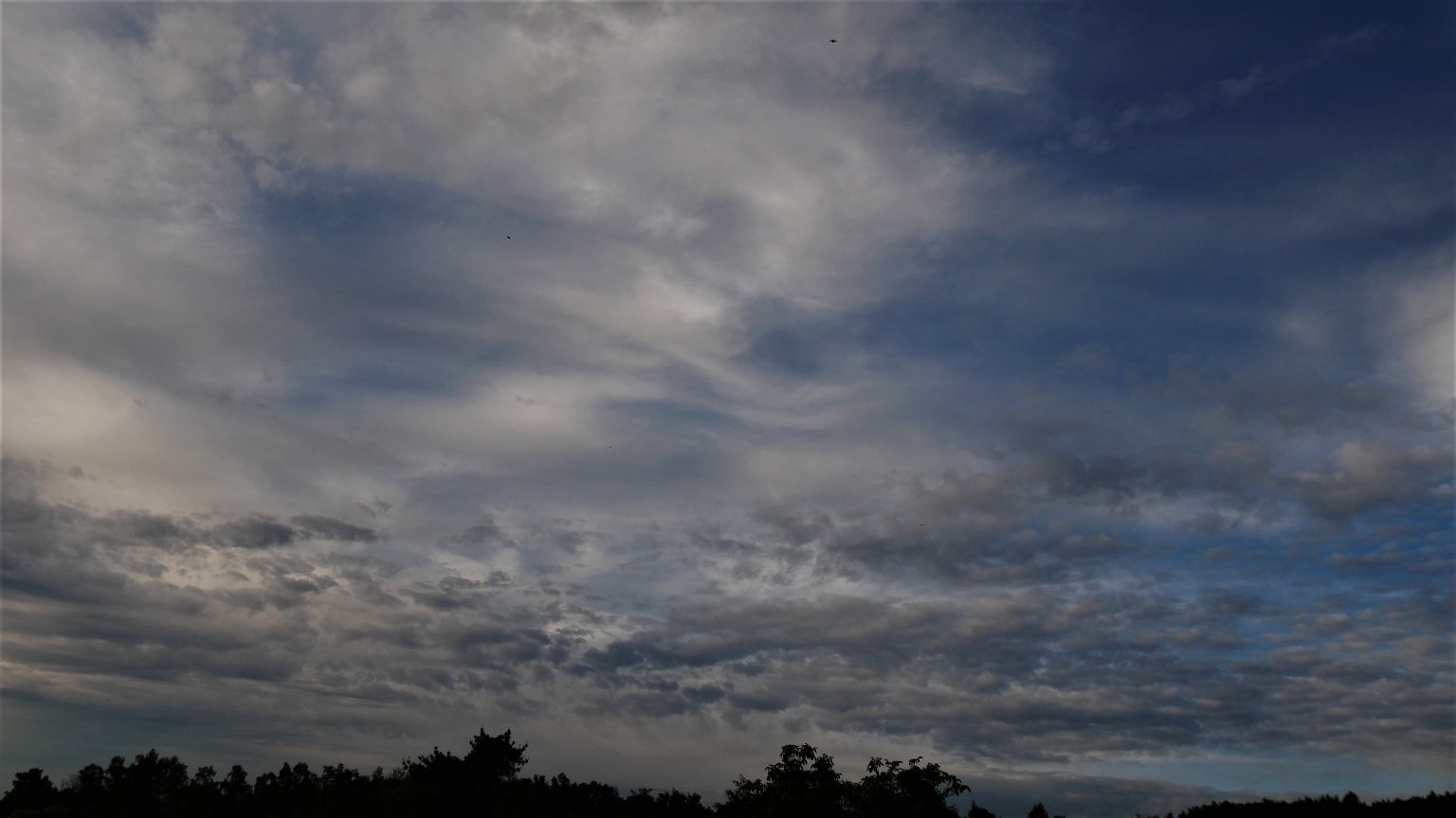 Klidno, bezvětří, Cirrocumulus (Cc) a Slunce pomalu zapadá