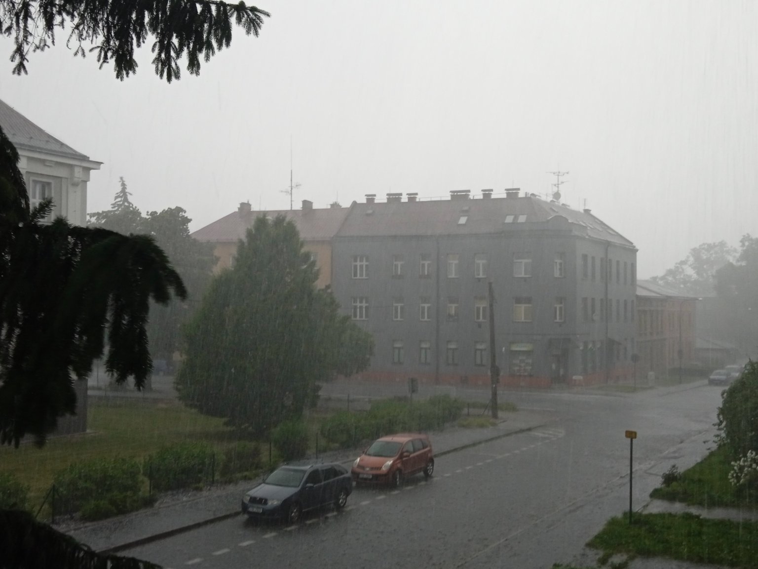 Bouřka jde okolo,zatím jen pár kapek,v dálce hřmí,SZ vítr 1,8 km/h,tlak 1012 hPa ,vlhkost 70%
