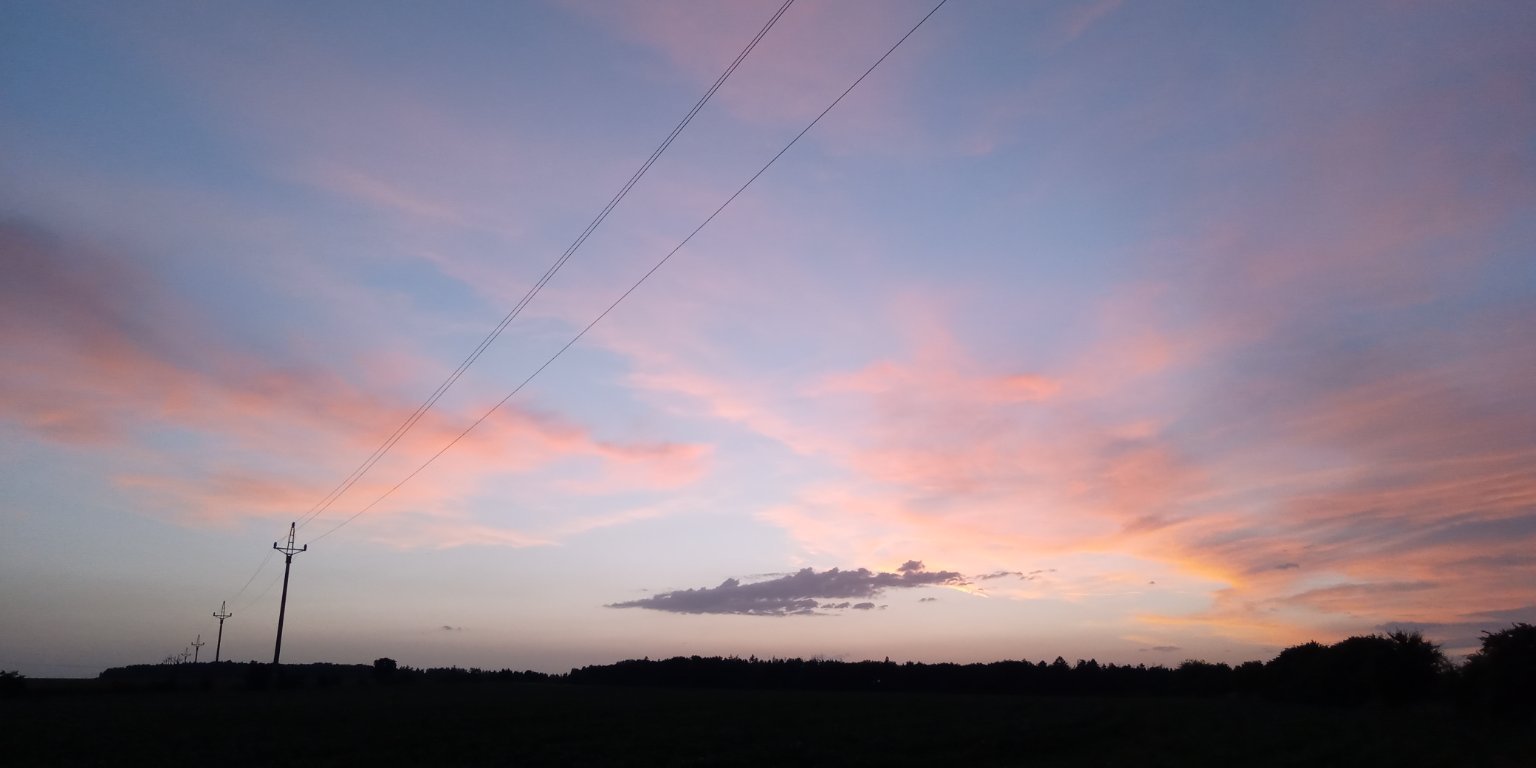 Na východě protrhaná oblačnost a na západě bouřka v dáli.