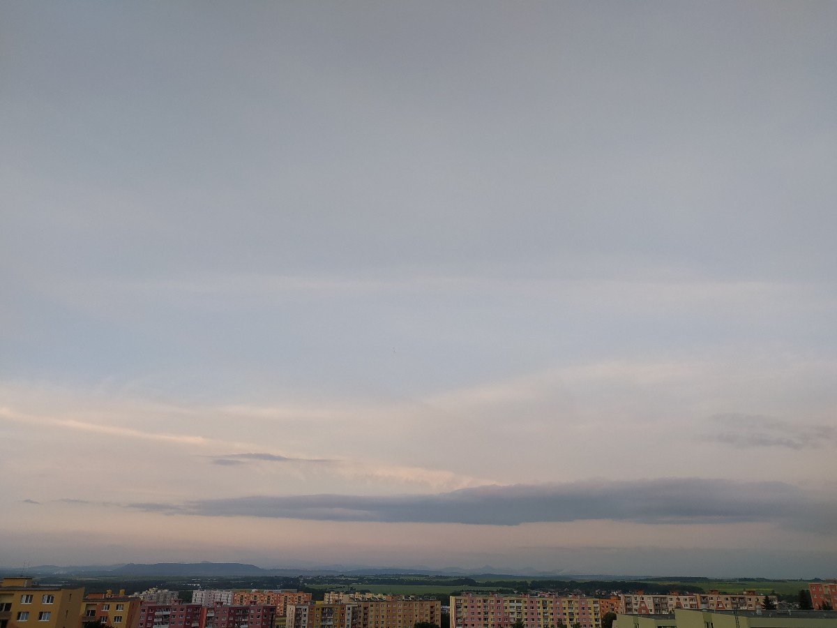 Je oblačno a bezvětří. Před hodinou bylo přechodně skoro jasno. Min teplota 18,8 st max teplota 23,6 st. Raní srážky sou 2 mm.