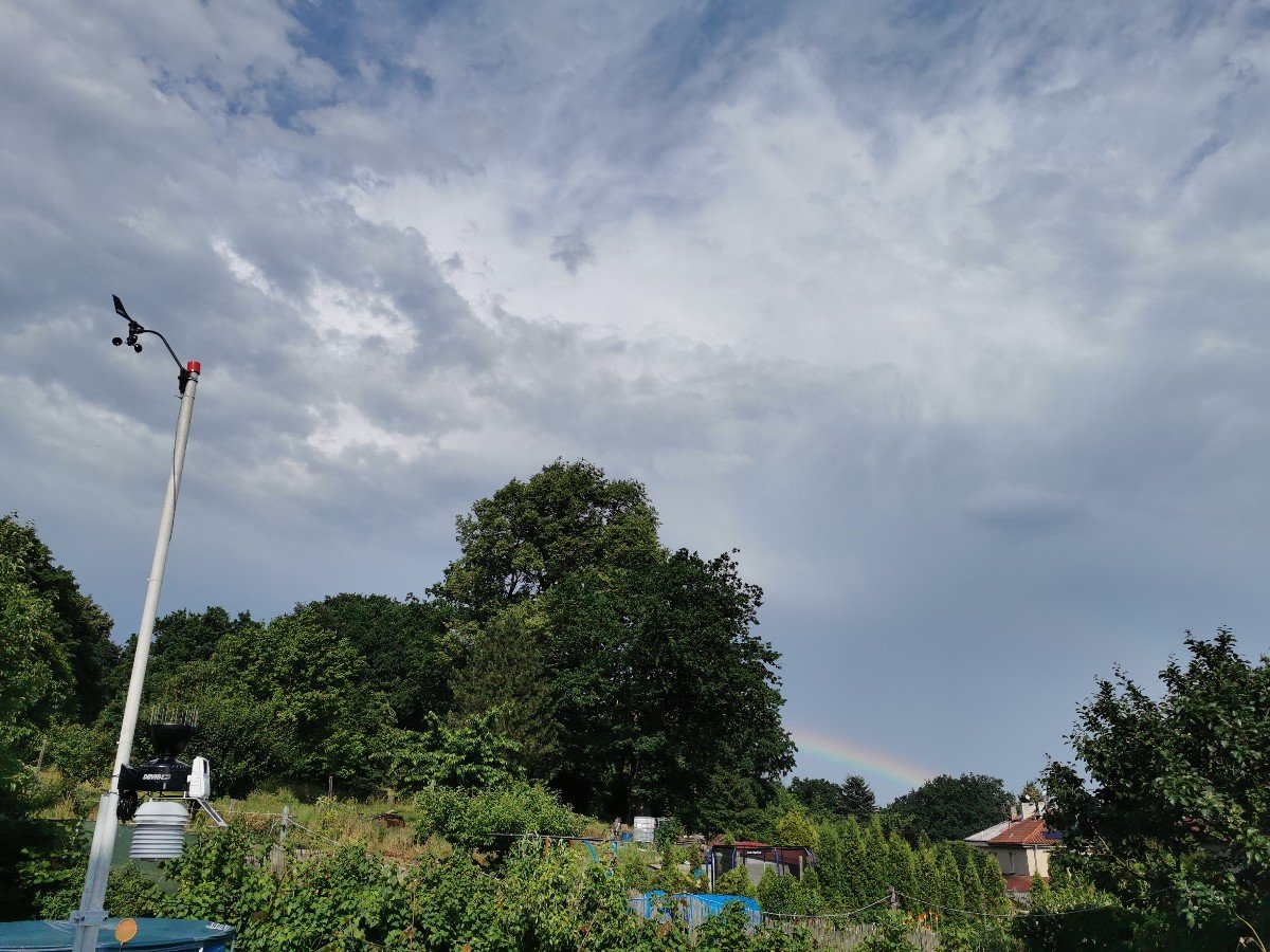 Od JZ se z Rakouska blíží bouřka, vytvořila se mammata. S vítr 14 km/h, tlak 1015 hPa, vlhkost 65 %.