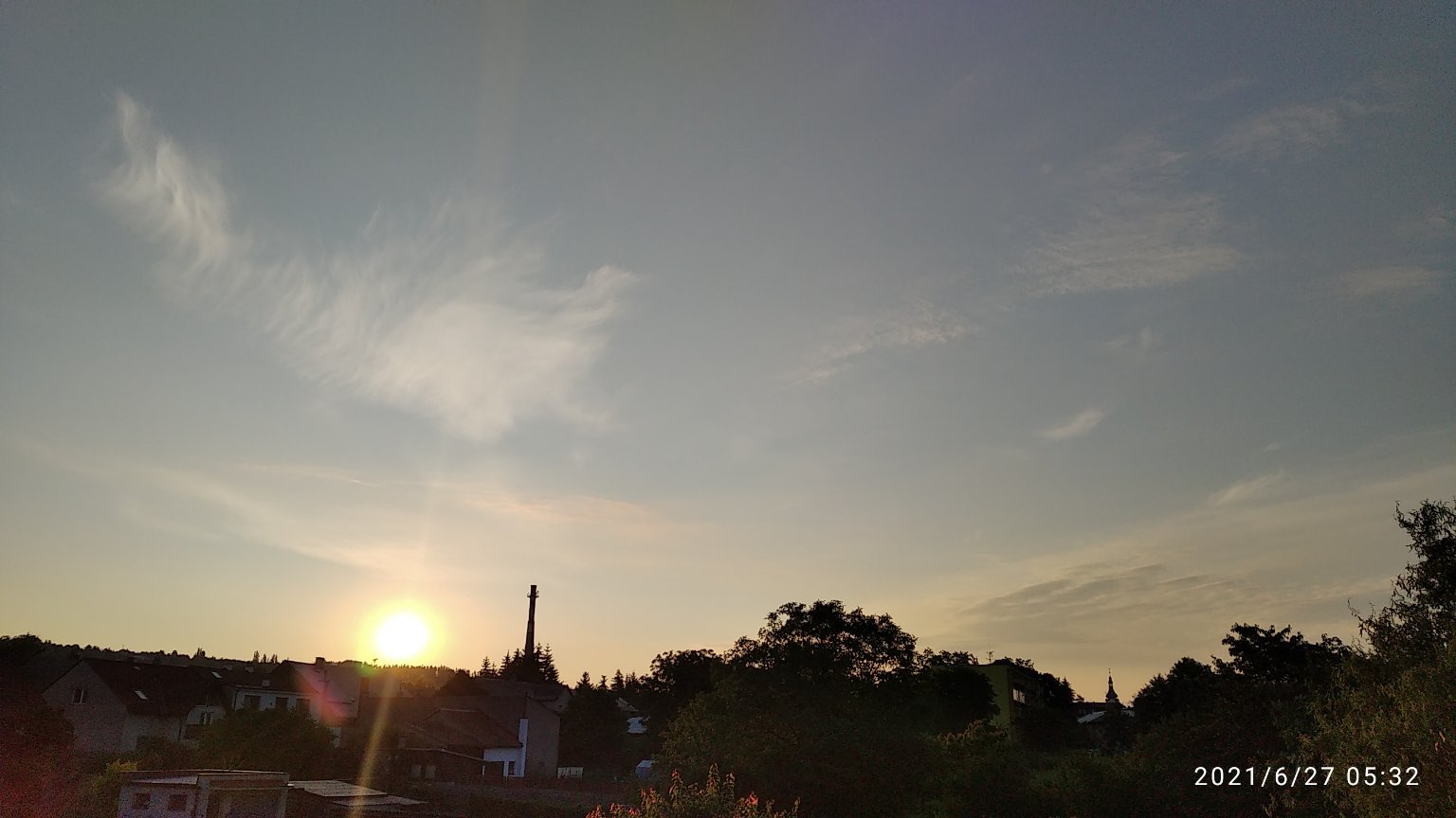 Oblačnost 84,9%, tlak 1017,95hPa→, poc.teplota 13,11°C, tepl.ros.bodu 12,78°C, rel.vlhkost 96,7%, abs.vlhkost 11,18g/m3, S vánek 3° 5,364km/hod.(1 Bft), ozon 337,3D.U., AQI 57(mírné znečištění ovzduší), UV index 0,2(nízký), délka dne 16hod.11min.18vt., světlo 3414,4 lx, včerejší průměrná teplota 19,47°C.
