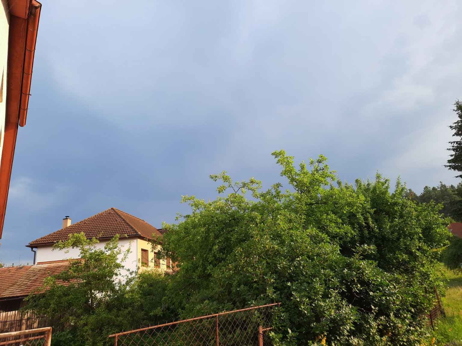 Od jihu se blíží bouřkové mraky. Nad Chrudimi bouřka.