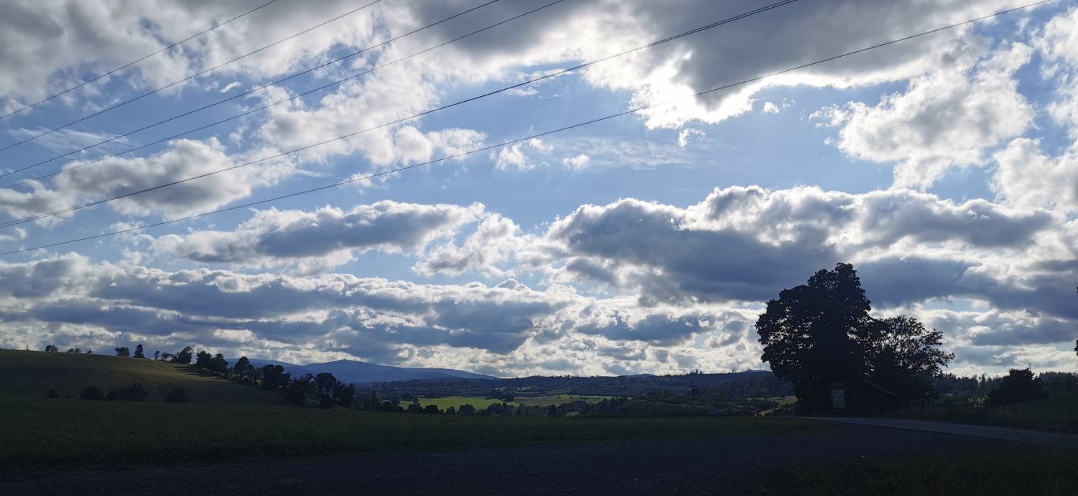 Je polojasno a vane slabý proměnlivý vítr. Od jihu se žene nějakej ten déšť ale slábne. Min teplota 15,8 st max teplota 23,4 st. Noční bouřka nadělila 20 mm srážek. Srážky za červen sou 58 mm.