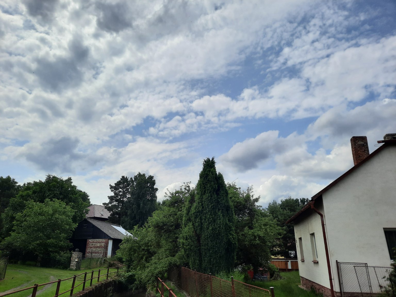 Skoro zataženo, bezvětří, tlak 1018 hPa, vlhkost 68 %. Dnešní minimum bylo 14,1 °C.