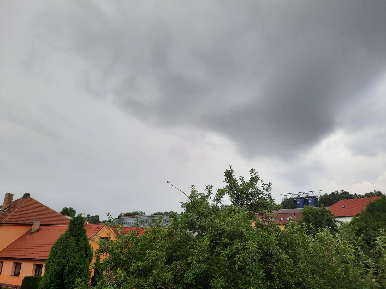 Skoro zamračené, búrka v diaľke