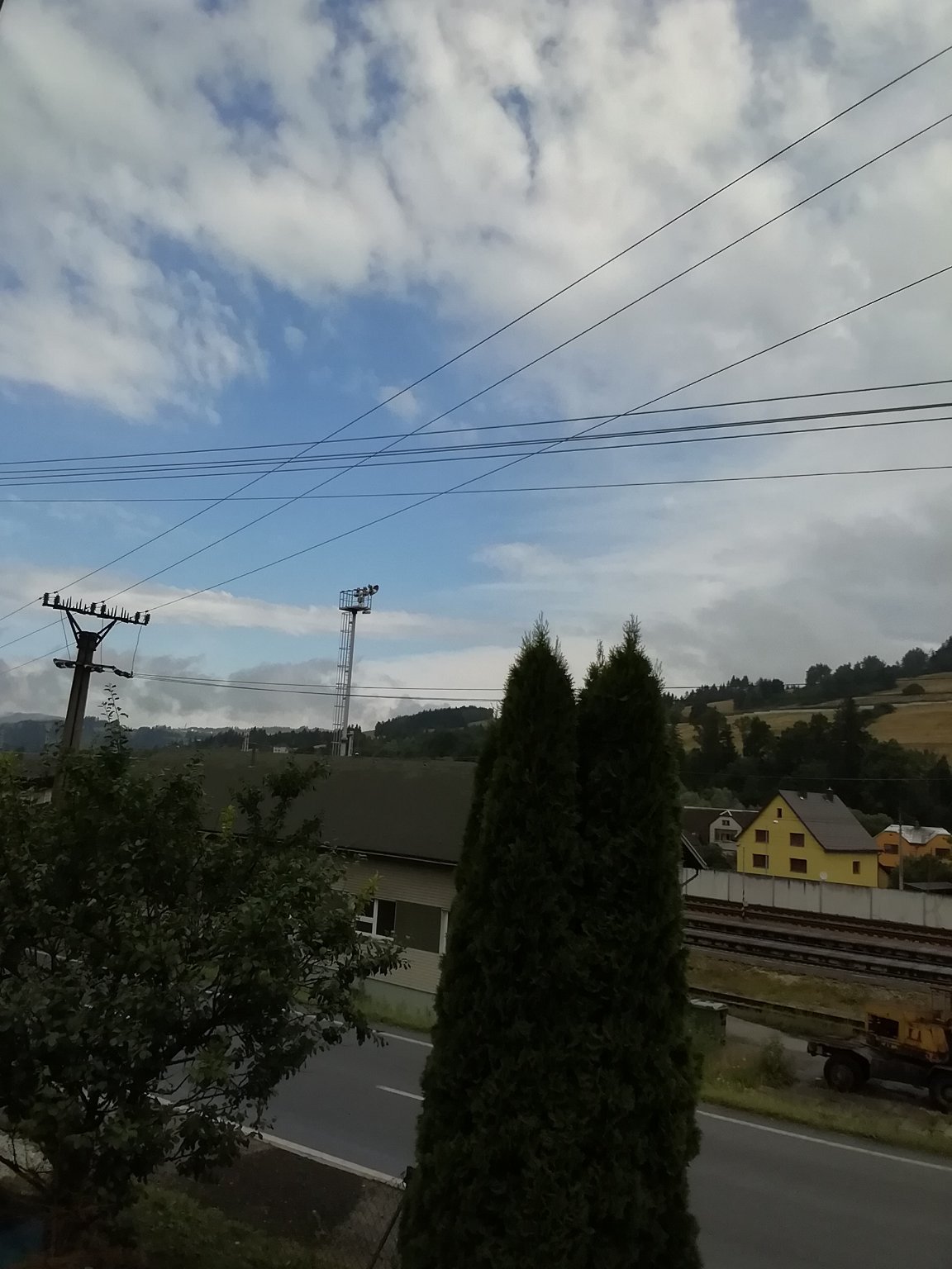 17,8°C, Polojasno. Tyto oblaky v zadu znači přichod silneho deště nebo bouřek, tak uvidime. Asi ořed hodinou zde byl bydatny dešť, ale ja jsem ještě spal.