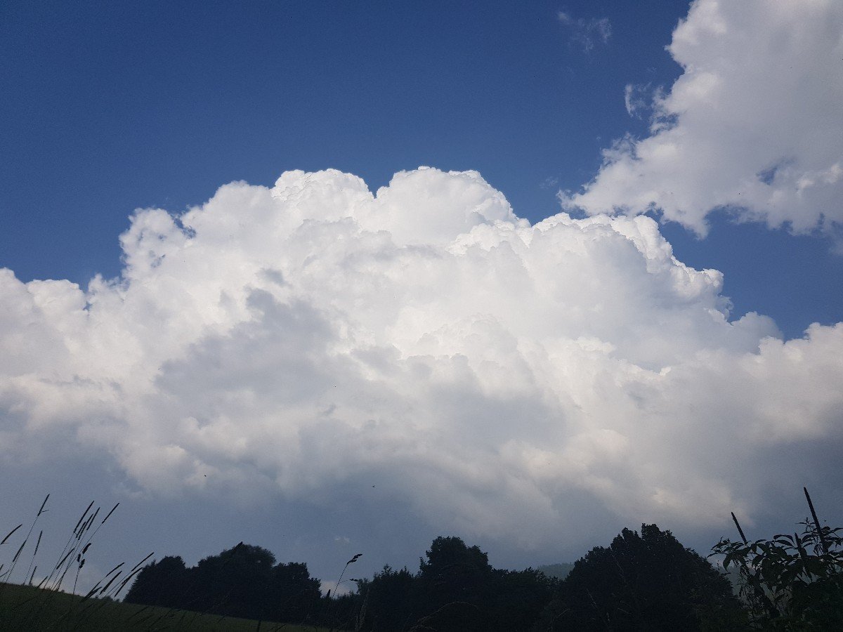 26°C, Polojasno. Krasny Kupovity oblak s vyraznymi paprsky Slunce! (PS: Nevite jak se jmenujou ty paprsky?).
