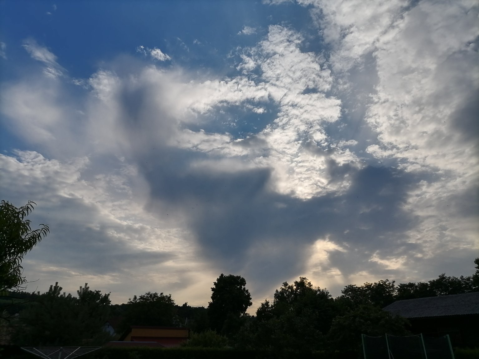 23,7°C, Polojasno. Krasne oblaky. Na to že je pul osme, tak je celkem teplo.