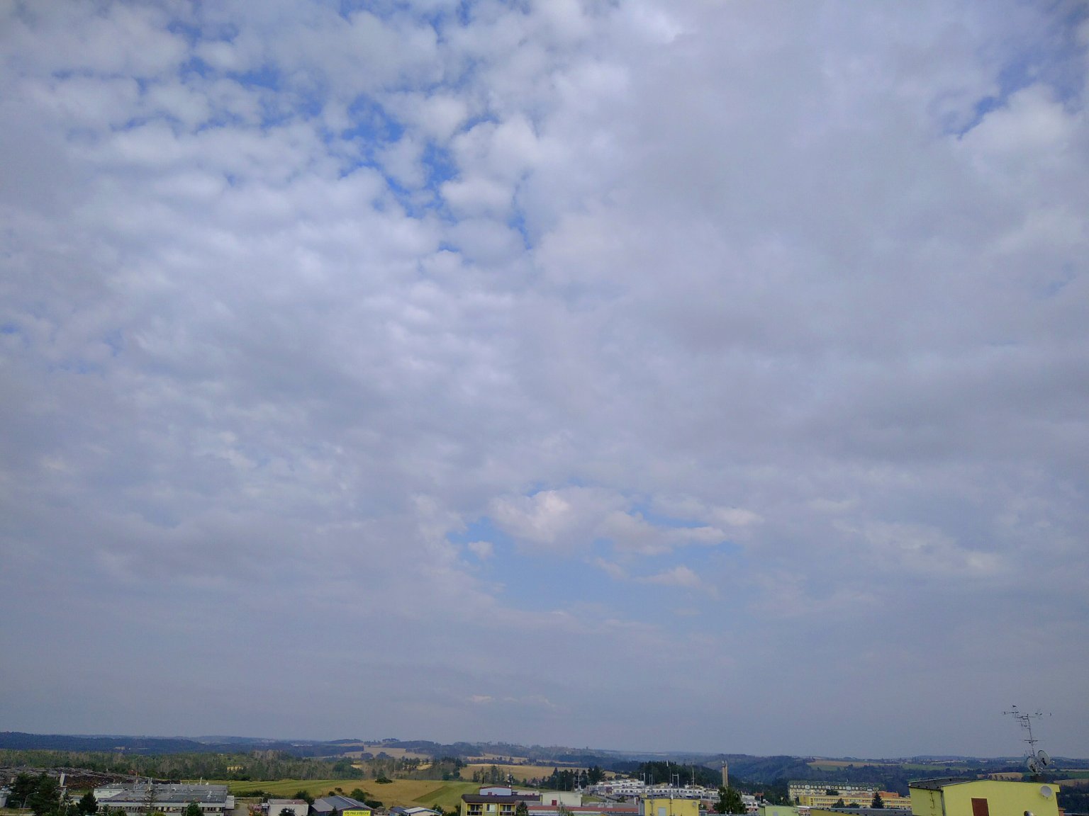 Oblačno až skoro zataženo, velké dusno. Východní vánek, tlak 1010 hPa, vlhkost 71 %