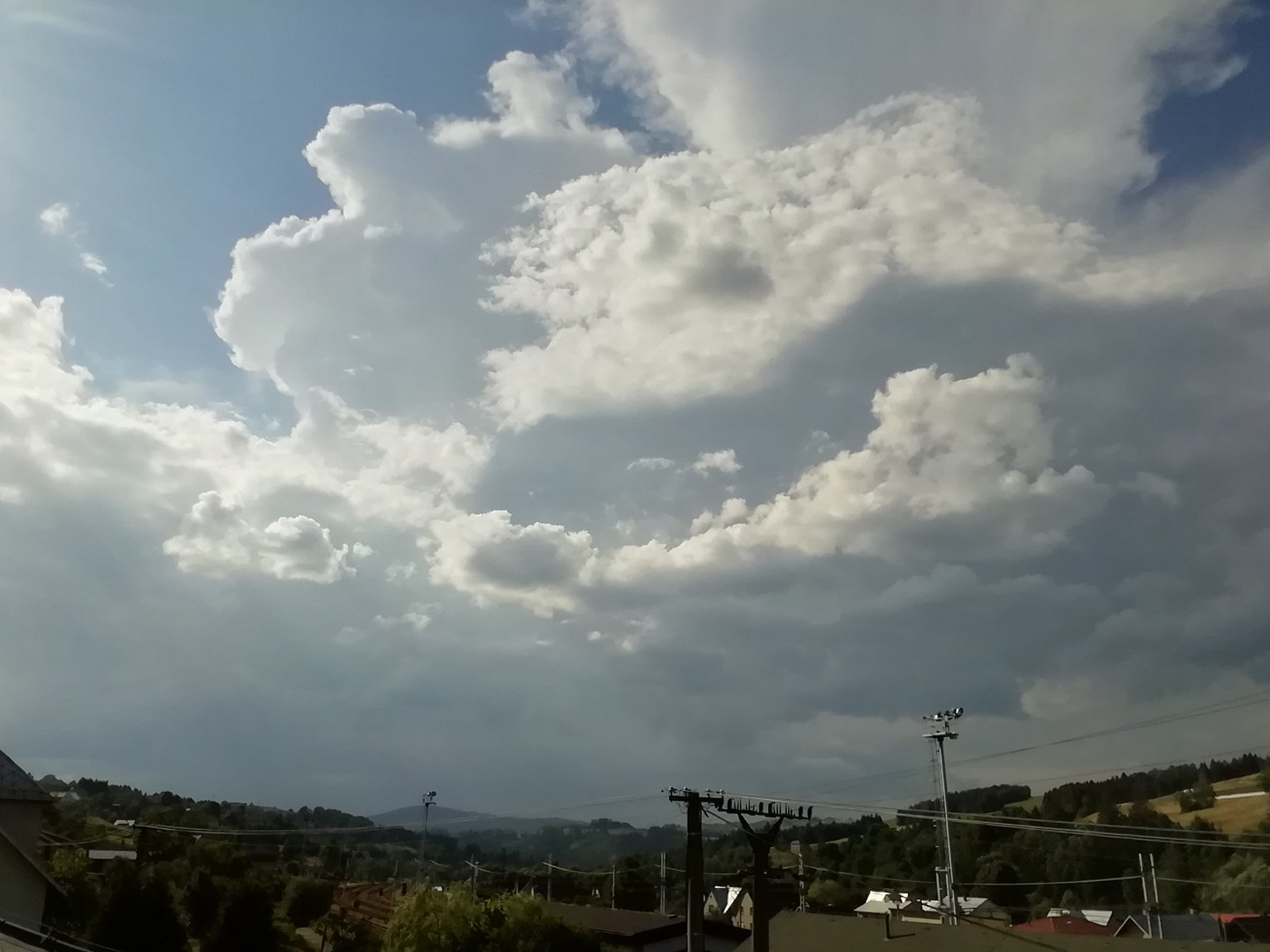 Na severozápadě hřmí, jedna bouřka nás míjí, další vypadá, že přijde sem. Na fotce rozhraní dvou oblačností.