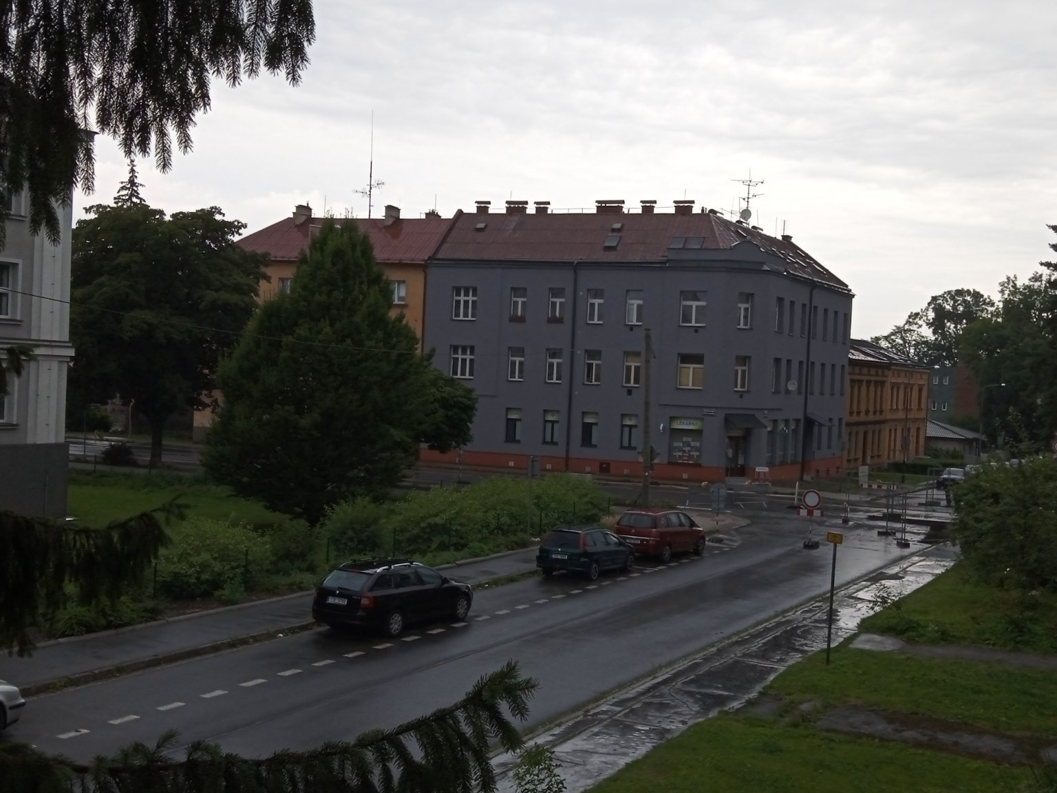 Zamračené, slabý až mierny dážď, búrka