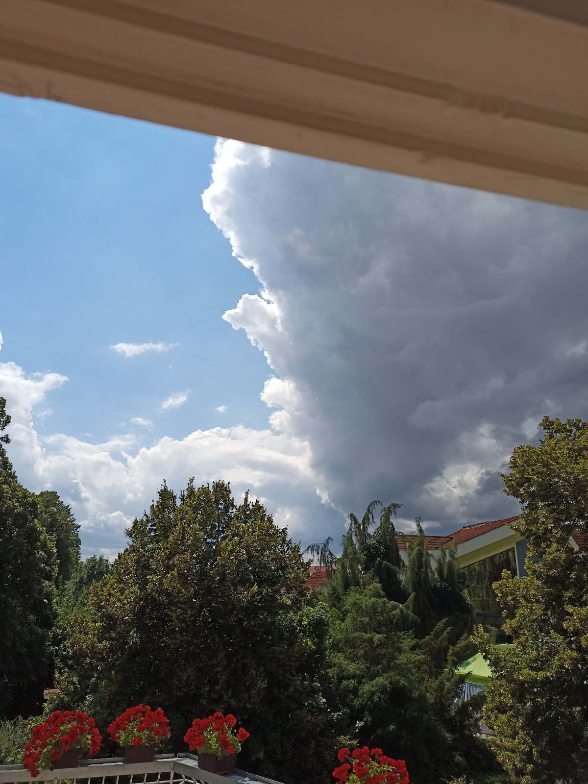 Žene se na nás silná přeháňka. Vítr vane mírný.