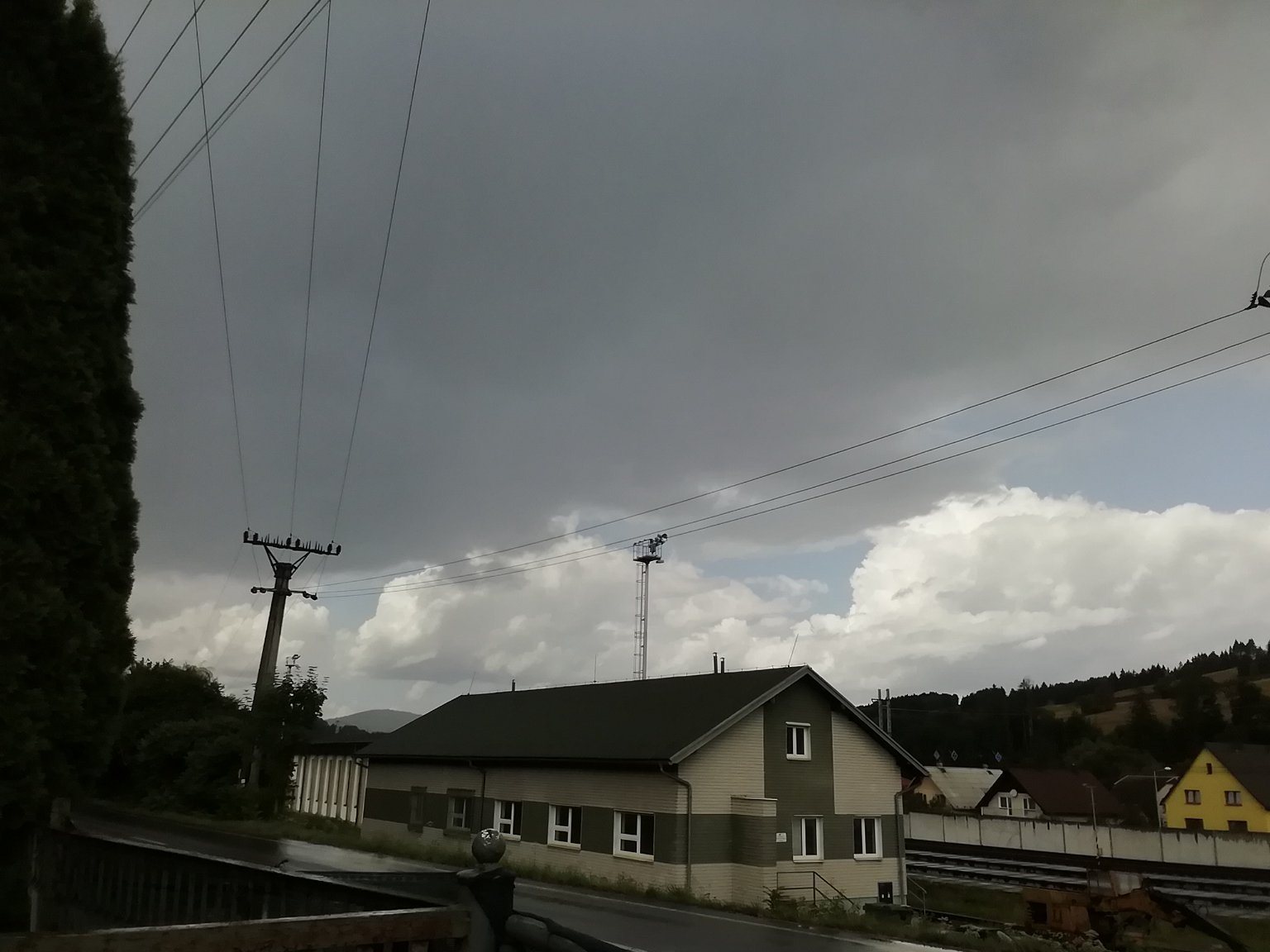 v okolí hřmí, pohled na S do hor, dle radaru JV kolem Loun bouřka