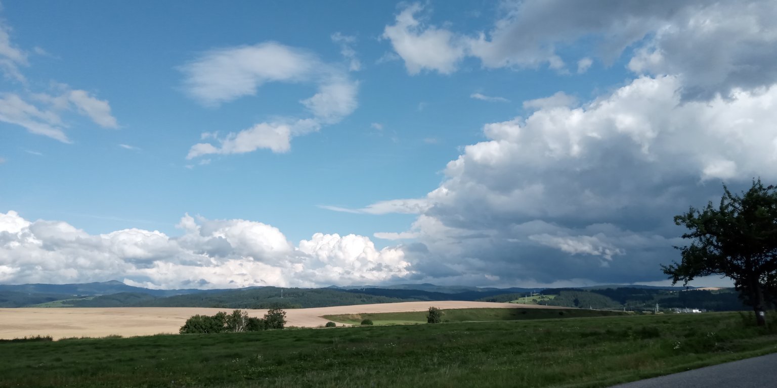 Aktuálně převažuje většinou skoro zataženo a se slaboučkou dešťovou přeháňkou a fouká většinou slabý vítr