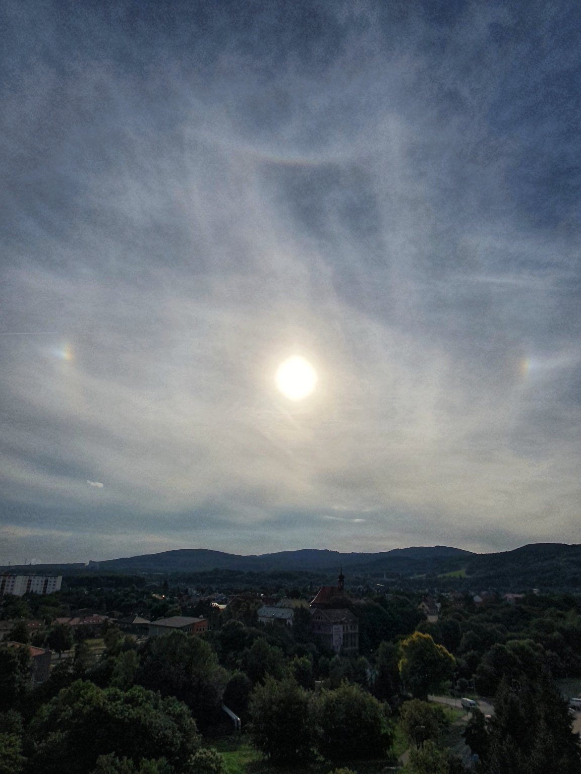 Zataženo vysokou oblačností,SV vánek,tlak 1020 hPa,vlhkost 54%