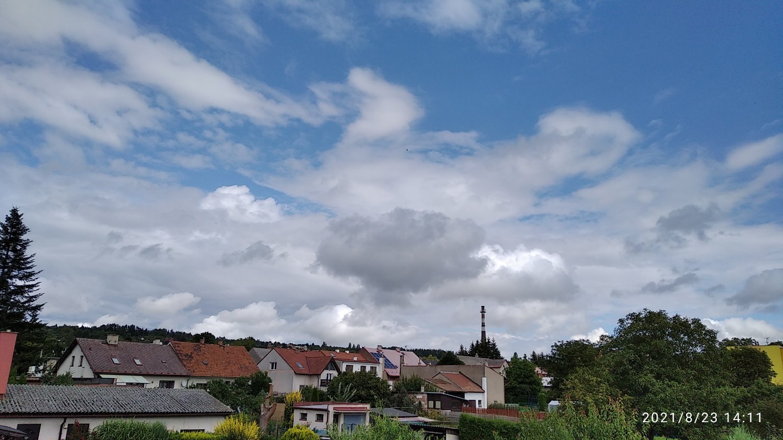Aktuálně převažuje většinou skoro zataženo až oblačno a se slabou až mírnou dešťovou přeháňkou a fouká většinou slabý až mírný vítr