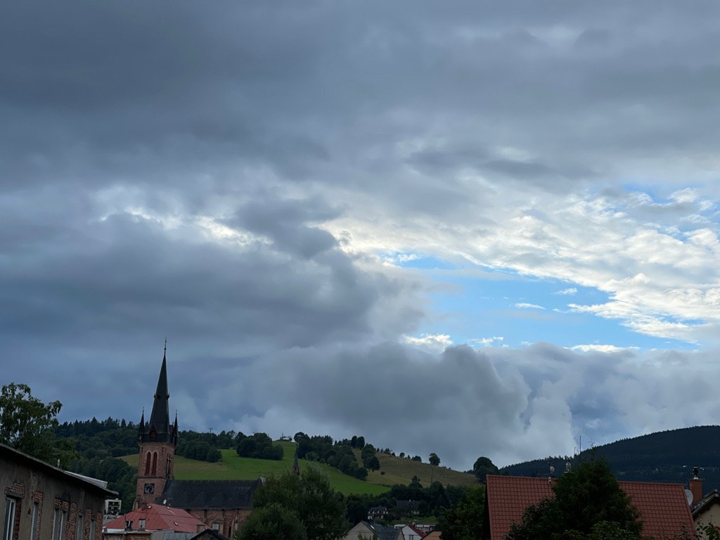 Aktuálně převažuje většinou skoro zataženo až oblačno a s mírnou až silnou dešťovou přeháňkou a fouká většinou slabý vítr