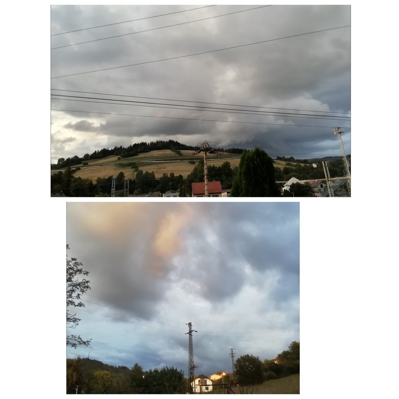 Vytvořila se slabá bouřka, prakticky bezvětří, poměrně intenzivně prší.