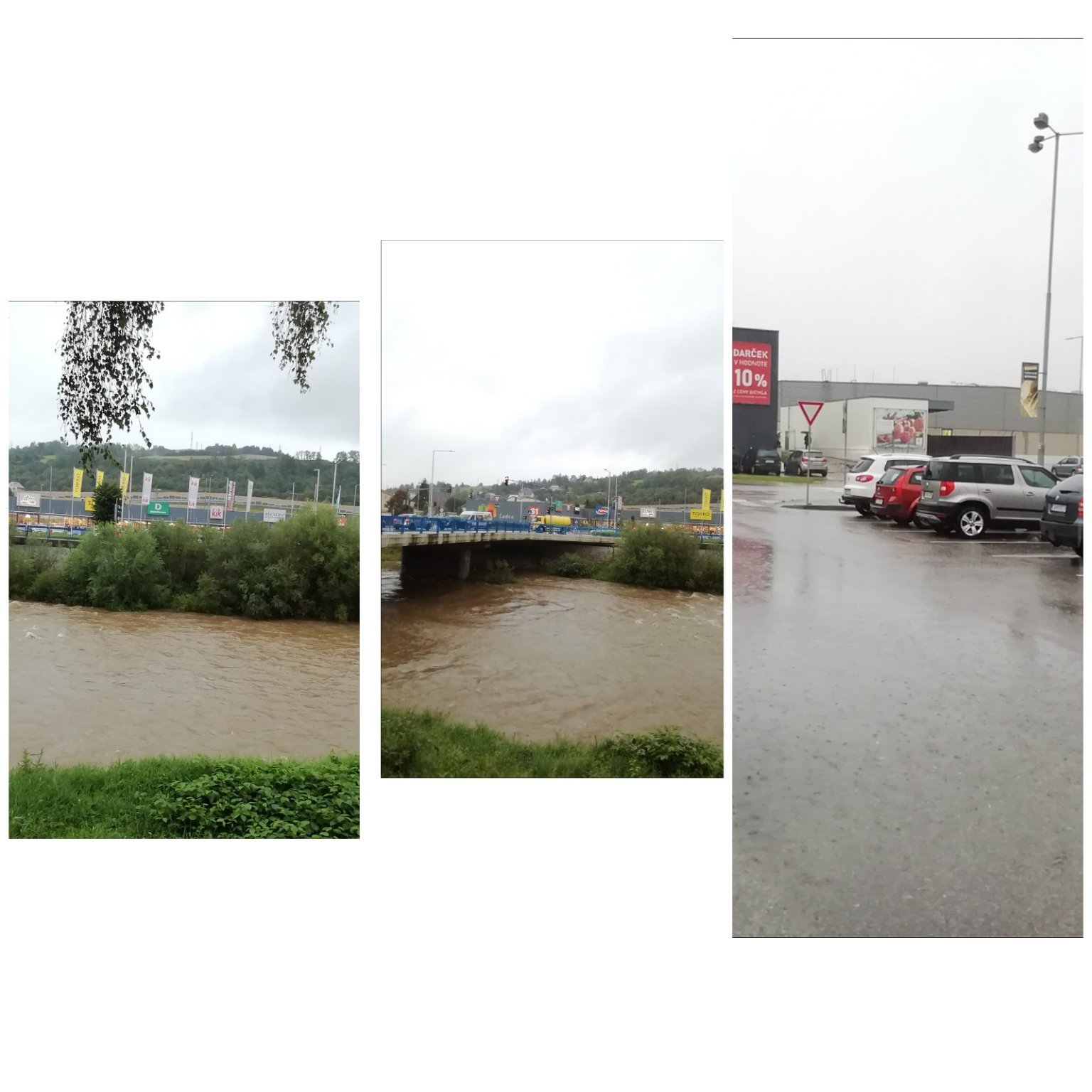 13,9°C, Mirny dešť (Vydatny). Radvanovka velmi rychle stoupa, ven jen na vlastni riziko, hned jste mokři!