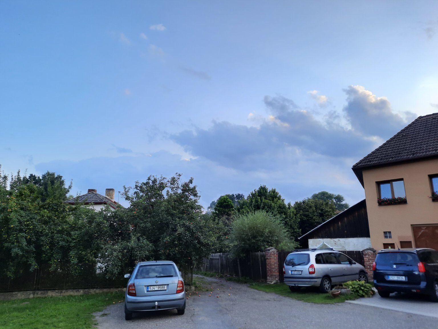 15,4°C, Polojasno. Slunce už zapadlo a vytvořilo krasnou oranžovou zaři.