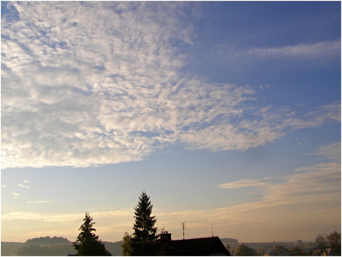 Odpoledne a k večeru již převládlo polojasno až skoro jasno. Vlhkost 74%, klidno. Takto krásně se loučilo sluníčko.