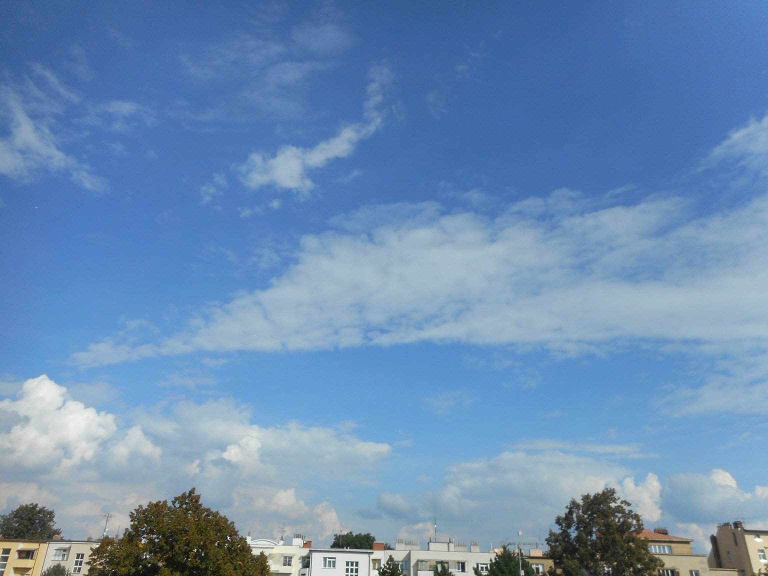 22,7°C, Polojasno. Bliži se celkem velke a černe mraky, tak uvidime.