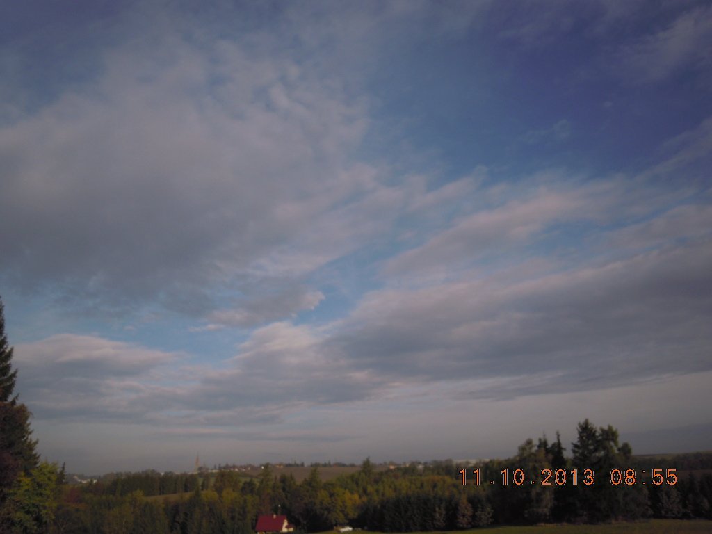 Oblačnost 68,5%, zákl.mraků 1613m, tlak 1013,4hPa, dohlednost 25km, vlhkost 81,2%, mírný SSV vítr 31° 7,4m/s(4 Bft).