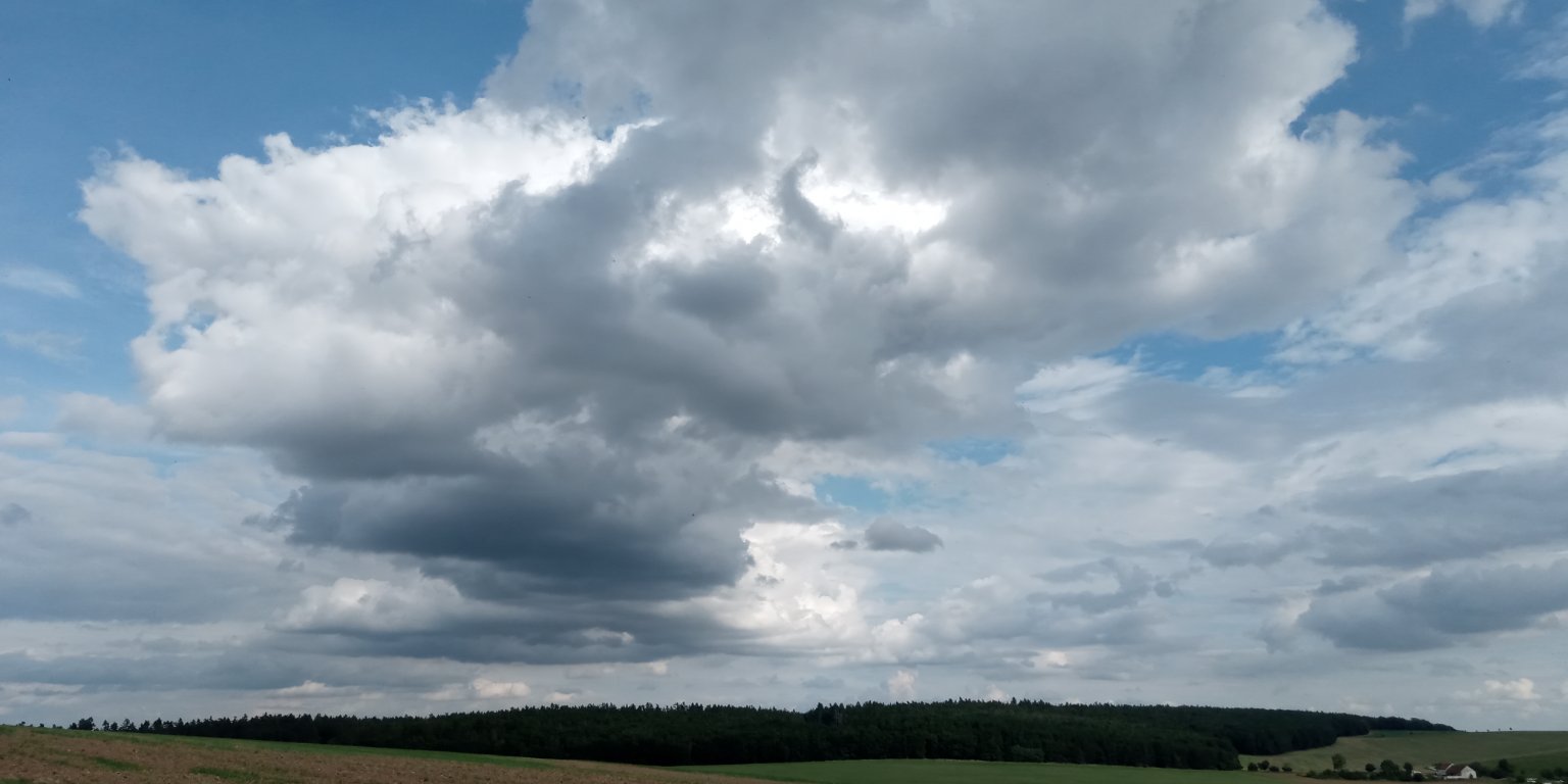 je zataženo,klidno a teplo,slabě prší