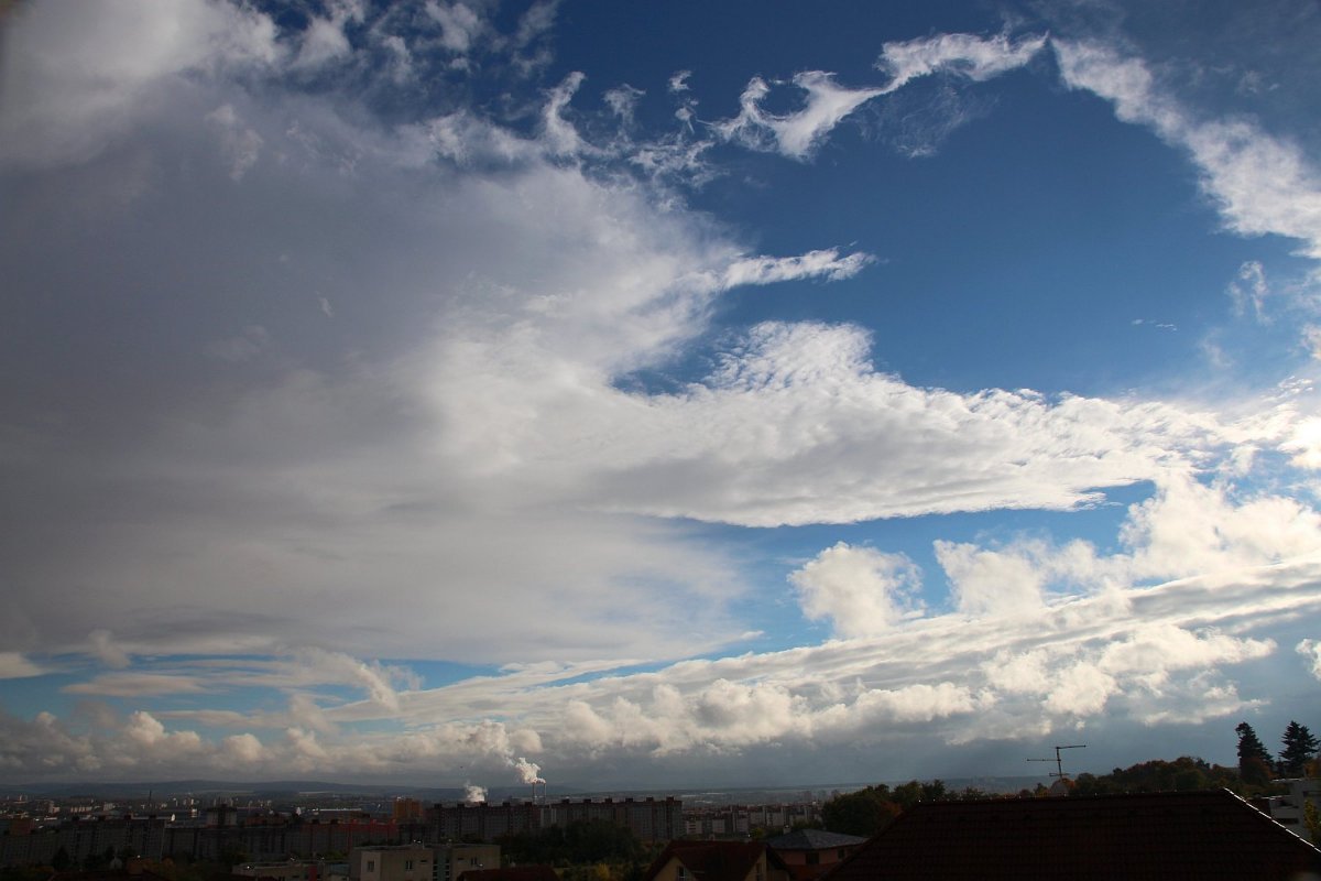 Začíná se zatahovat, nejspíše bude pršet. Tlak 1013.8 hPa.