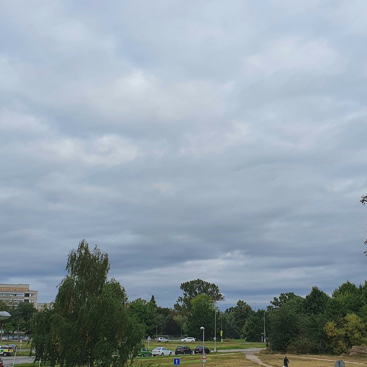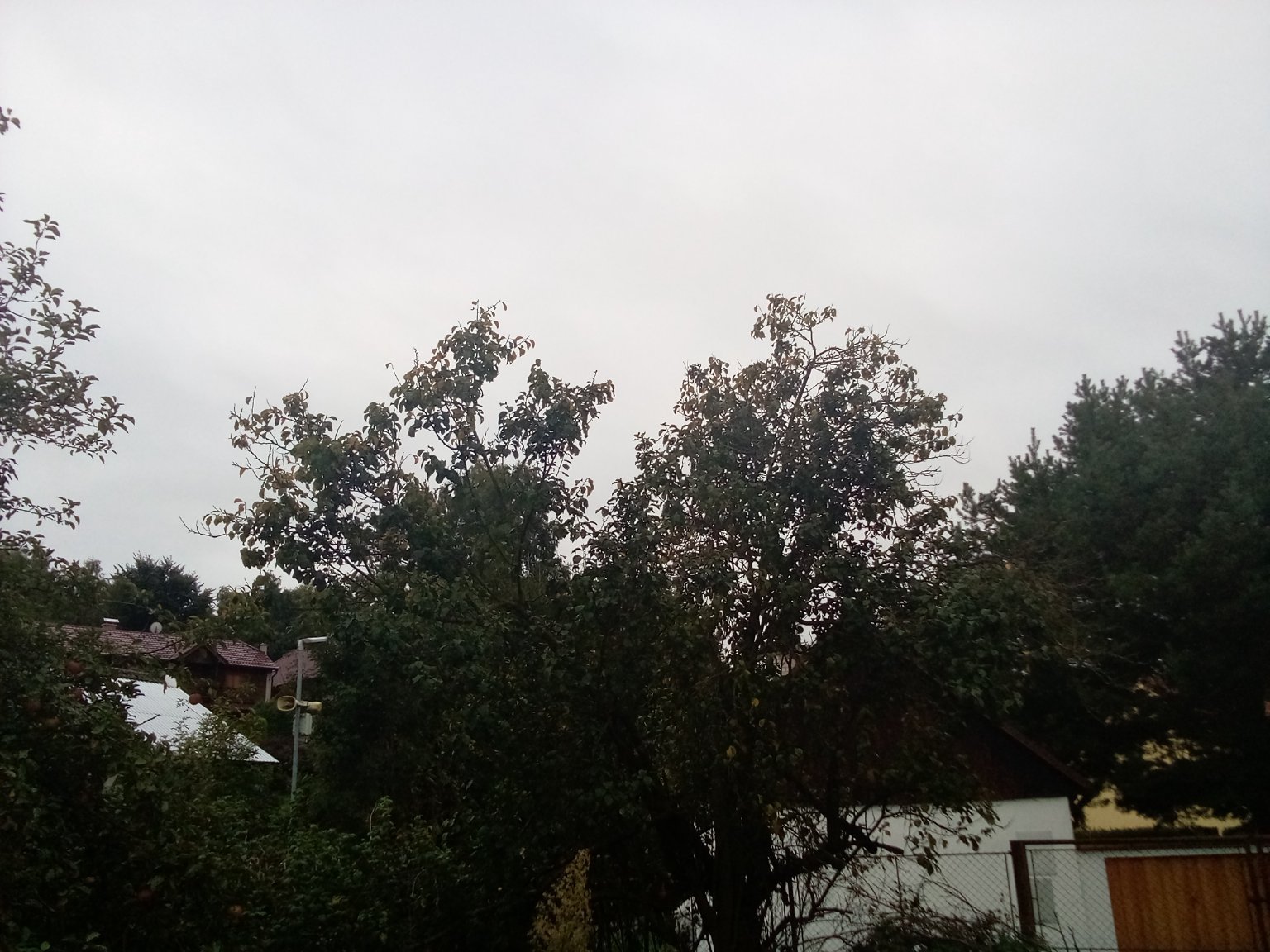 Na obloze jen nízká oblačnost a ještě níže horkovzdušný balón.